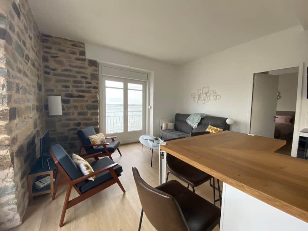 Entrée de l'appartement avec vue mer et vue plage